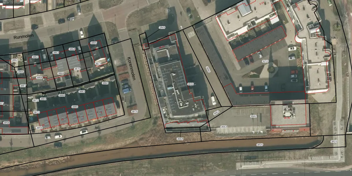 Het perceel waarop Runmolen 54 staat heeft een oppervlakte van 1503 m². Dit is een zeer groot perceel. De perceeloppervlakte wordt geregistreerd door het Kadaster. Gedetailleerde informatie over de maten van dit perceel kunt u vinden in het rapport Kadastrale kaart met maatvoering van Runmolen 54.