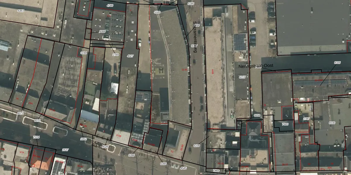 Het perceel waarop Sacramentsweg 39 staat heeft een oppervlakte van 1875 m². Dit is een zeer groot perceel. De perceeloppervlakte wordt geregistreerd door het Kadaster. Gedetailleerde informatie over de maten van dit perceel kunt u vinden in het rapport Kadastrale kaart met maatvoering van Sacramentsweg 39.