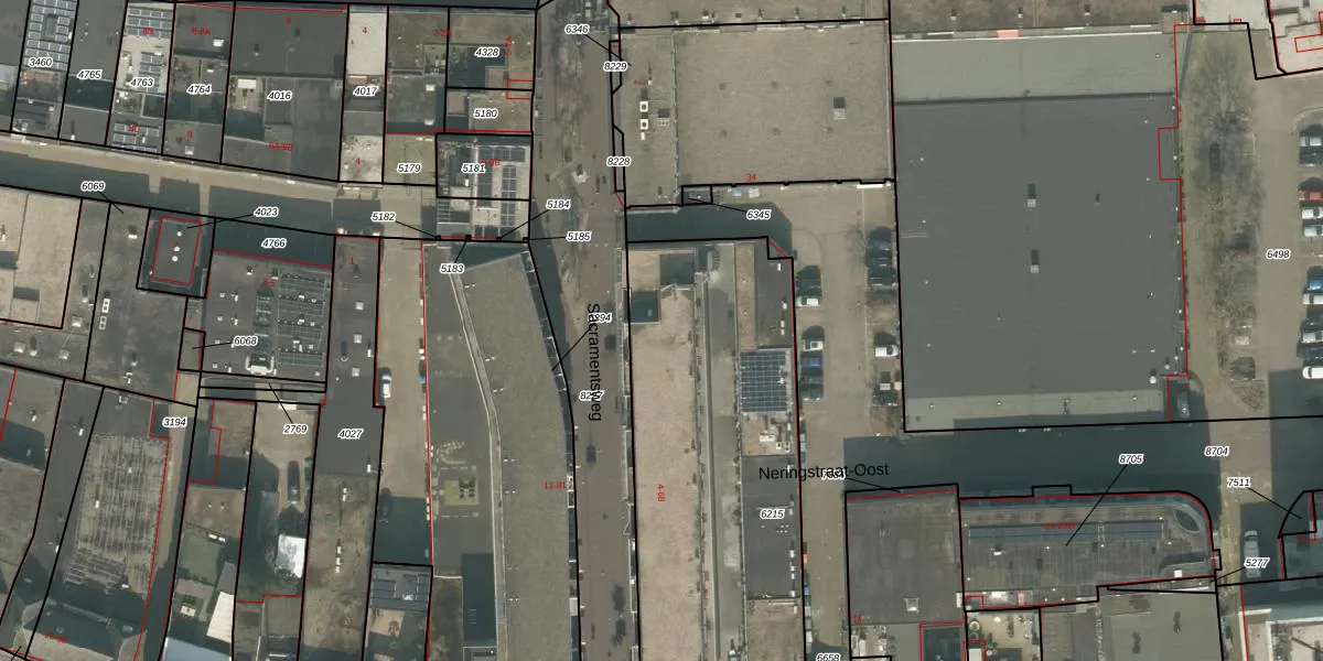 Sacramentsweg 56 is gelegen op kadastraal perceel UDN00M6215. Deze kadastrale aanduiding is uniek en wordt gebruikt door het Kadaster om eigendomsrechten en andere zakelijke rechten vast te leggen. Het perceel maakt onderdeel uit van de kadastrale gemeente Uden.