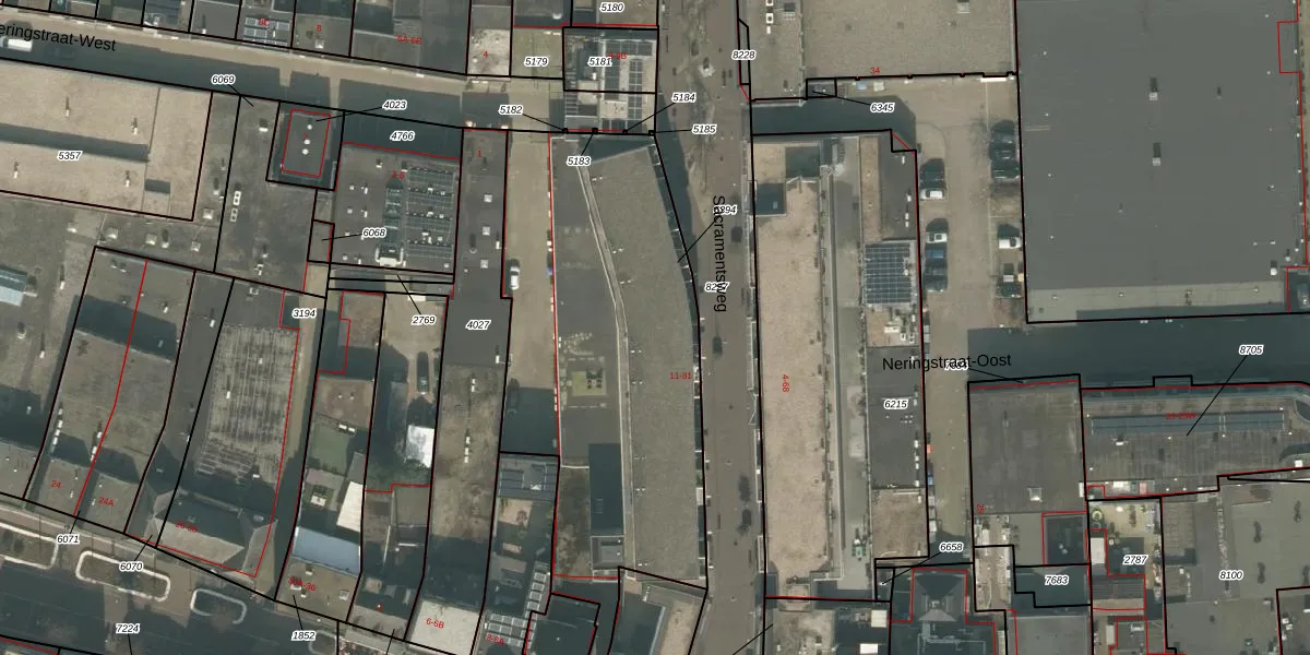 Het perceel waarop Sacramentsweg 59 staat heeft een oppervlakte van 1875 m². Dit is een zeer groot perceel. De perceeloppervlakte wordt geregistreerd door het Kadaster. Gedetailleerde informatie over de maten van dit perceel kunt u vinden in het rapport Kadastrale kaart met maatvoering van Sacramentsweg 59.