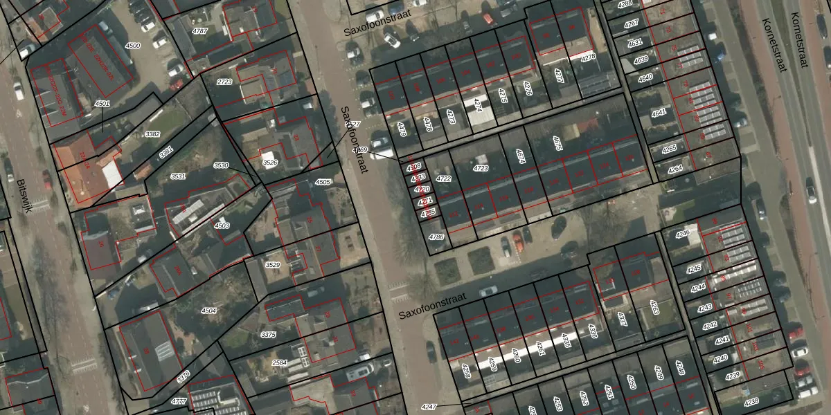 Gebruik de zoekbalk of klik op een perceel voor informatie over de adressen binnen dit perceel.