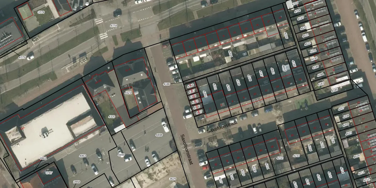 Gebruik de zoekbalk of klik op een perceel voor informatie over de adressen binnen dit perceel.