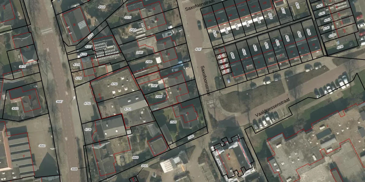 Saxofoonstraat 39 is gelegen op kadastraal perceel UDN00B2588. Deze kadastrale aanduiding is uniek en wordt gebruikt door het Kadaster om eigendomsrechten en andere zakelijke rechten vast te leggen. Het perceel maakt onderdeel uit van de kadastrale gemeente Uden.