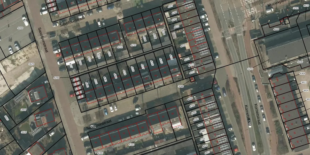 Het perceel waarop Saxofoonstraat 54 staat heeft een oppervlakte van 145 m². Dit is een middelgroot perceel. De perceeloppervlakte wordt geregistreerd door het Kadaster. Gedetailleerde informatie over de maten van dit perceel kunt u vinden in het rapport Kadastrale kaart met maatvoering van Saxofoonstraat 54.