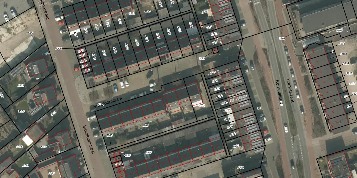 Saxofoonstraat 62 is gelegen op kadastraal perceel UDN00B4702. Deze kadastrale aanduiding is uniek en wordt gebruikt door het Kadaster om eigendomsrechten en andere zakelijke rechten vast te leggen. Het perceel maakt onderdeel uit van de kadastrale gemeente Uden.