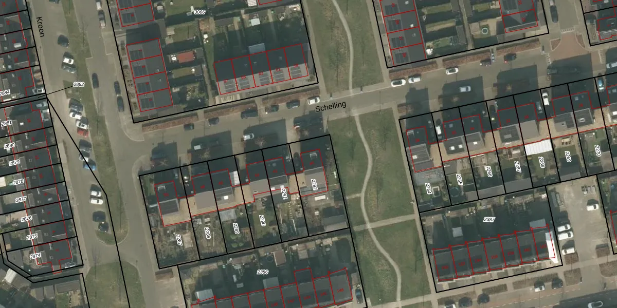 Het perceel waarop Schelling 40 staat heeft een oppervlakte van 419 m². Dit is een groot perceel. De perceeloppervlakte wordt geregistreerd door het Kadaster. Gedetailleerde informatie over de maten van dit perceel kunt u vinden in het rapport Kadastrale kaart met maatvoering van Schelling 40.