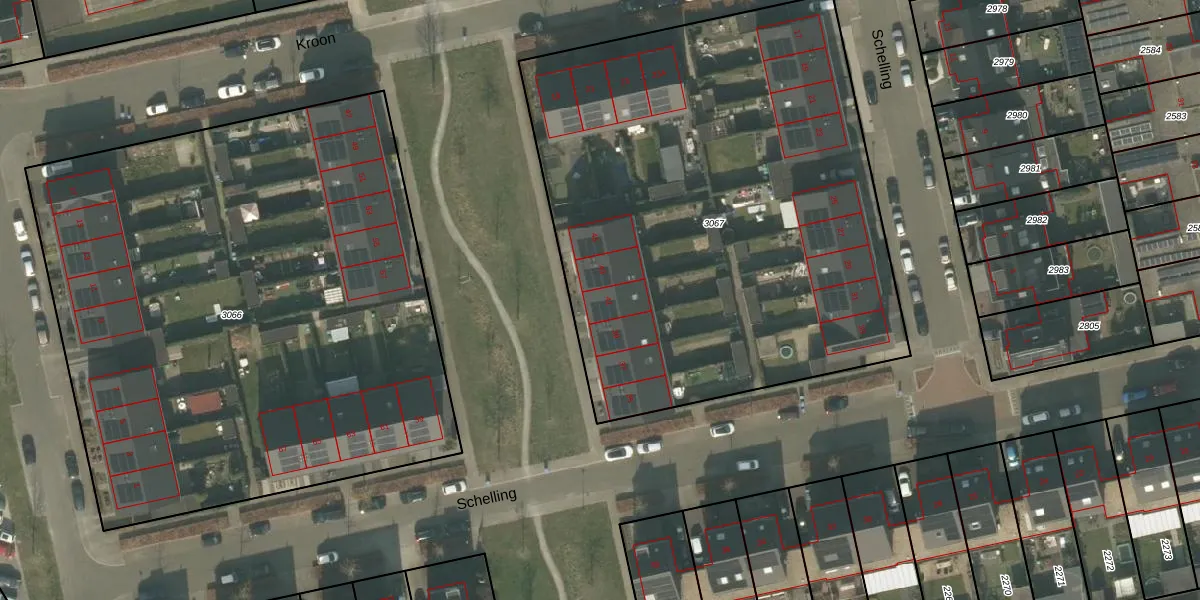 Het perceel waarop Schelling 41 staat heeft een oppervlakte van 3310 m². Dit is een zeer groot perceel. De perceeloppervlakte wordt geregistreerd door het Kadaster. Gedetailleerde informatie over de maten van dit perceel kunt u vinden in het rapport Kadastrale kaart met maatvoering van Schelling 41.