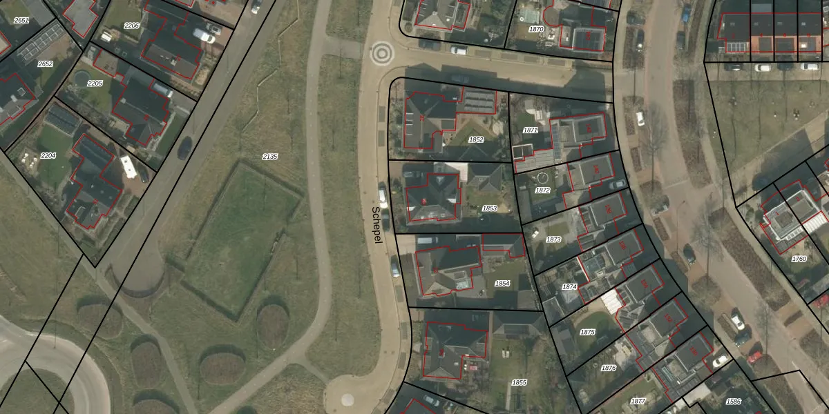 Het perceel waarop Schepel 30 staat heeft een oppervlakte van 529 m². Dit is een groot perceel. De perceeloppervlakte wordt geregistreerd door het Kadaster. Gedetailleerde informatie over de maten van dit perceel kunt u vinden in het rapport Kadastrale kaart met maatvoering van Schepel 30.