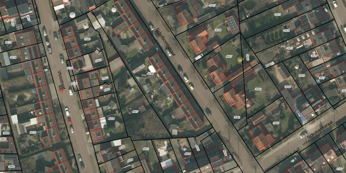 Schutboomstraat 13 is gelegen op kadastraal perceel UDN00M4298. Deze kadastrale aanduiding is uniek en wordt gebruikt door het Kadaster om eigendomsrechten en andere zakelijke rechten vast te leggen. Het perceel maakt onderdeel uit van de kadastrale gemeente Uden.