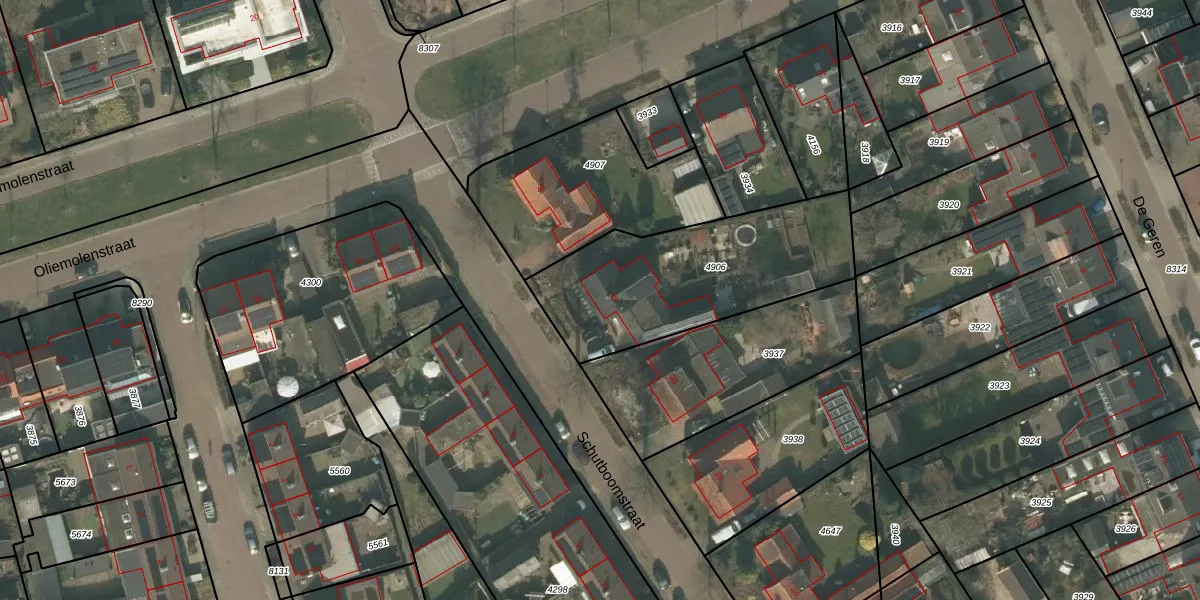 Gebruik de zoekbalk of klik op een perceel voor informatie over de adressen binnen dit perceel.