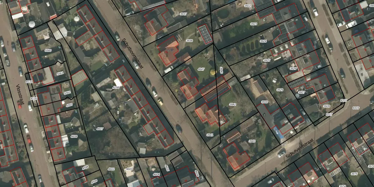 Het perceel waarop Schutboomstraat 24 staat heeft een oppervlakte van 560 m². Dit is een groot perceel. De perceeloppervlakte wordt geregistreerd door het Kadaster. Gedetailleerde informatie over de maten van dit perceel kunt u vinden in het rapport Kadastrale kaart met maatvoering van Schutboomstraat 24.