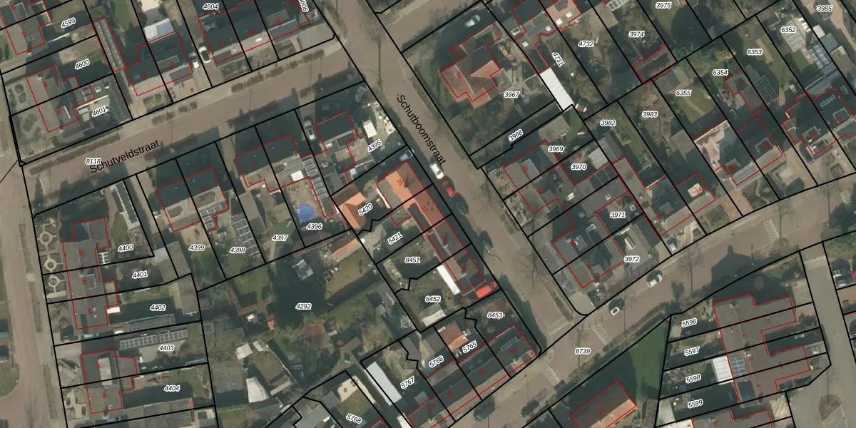 Gebruik de zoekbalk of klik op een perceel voor informatie over de adressen binnen dit perceel.