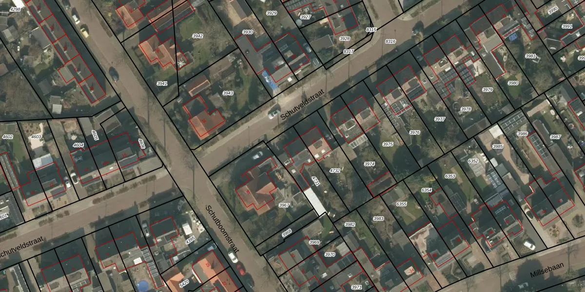 Het perceel waarop Schutveldstraat 11 staat heeft een oppervlakte van 341 m². Dit is een groot perceel. De perceeloppervlakte wordt geregistreerd door het Kadaster. Gedetailleerde informatie over de maten van dit perceel kunt u vinden in het rapport Kadastrale kaart met maatvoering van Schutveldstraat 11.