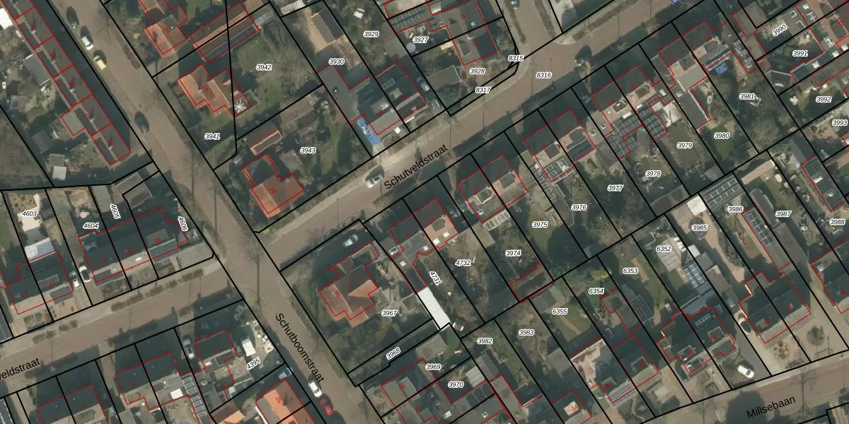 Schutveldstraat 13 is gelegen op kadastraal perceel UDN00M4732. Deze kadastrale aanduiding is uniek en wordt gebruikt door het Kadaster om eigendomsrechten en andere zakelijke rechten vast te leggen. Het perceel maakt onderdeel uit van de kadastrale gemeente Uden.