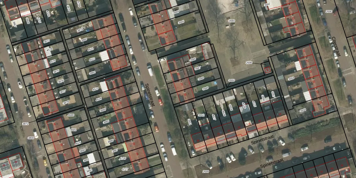 Gebruik de zoekbalk of klik op een perceel voor informatie over de adressen binnen dit perceel.