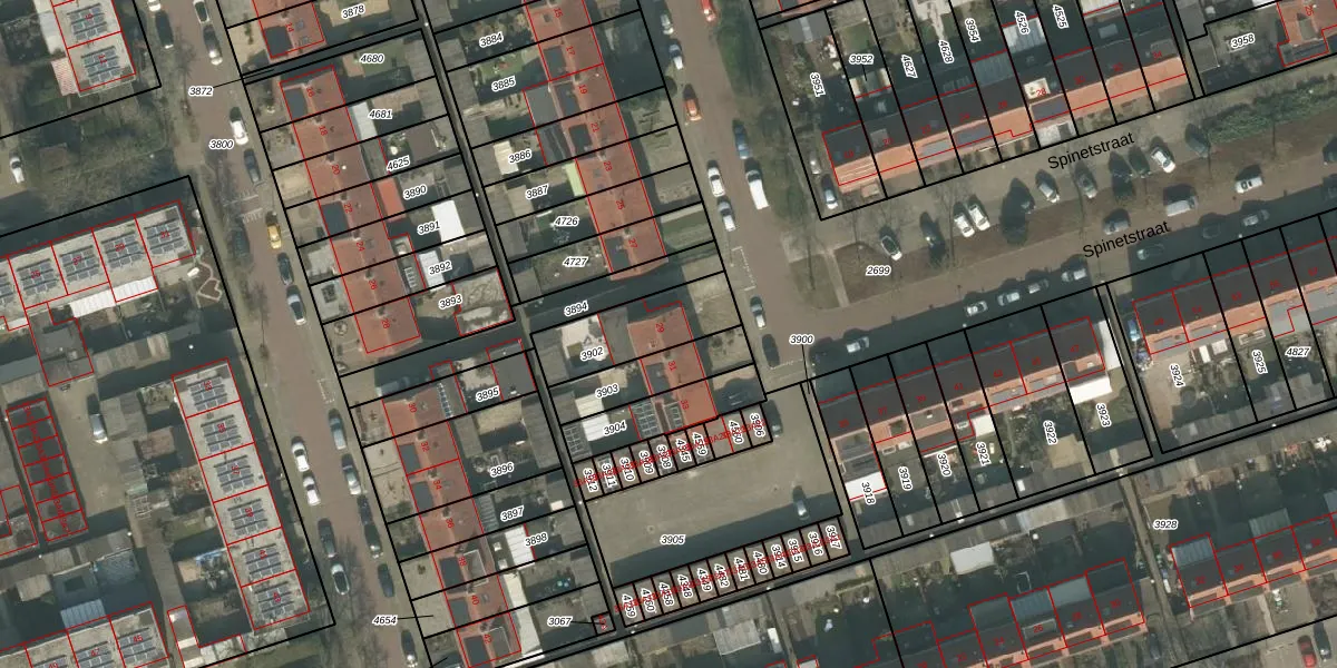 Spinetstraat 29 is gelegen op kadastraal perceel UDN00B3902. Deze kadastrale aanduiding is uniek en wordt gebruikt door het Kadaster om eigendomsrechten en andere zakelijke rechten vast te leggen. Het perceel maakt onderdeel uit van de kadastrale gemeente Uden.