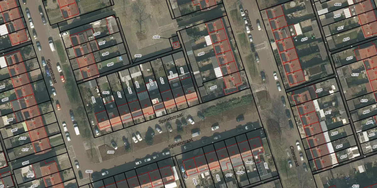Gebruik de zoekbalk of klik op een perceel voor informatie over de adressen binnen dit perceel.