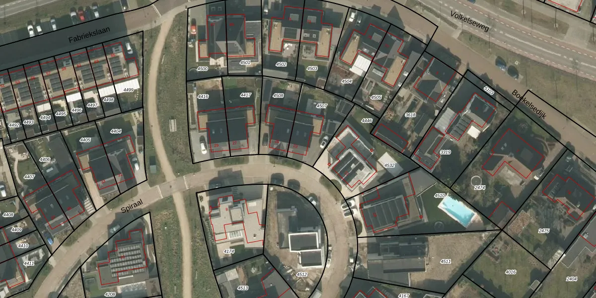 Het perceel waarop Spiraal 23 staat heeft een oppervlakte van 362 m². Dit is een groot perceel. De perceeloppervlakte wordt geregistreerd door het Kadaster. Gedetailleerde informatie over de maten van dit perceel kunt u vinden in het rapport Kadastrale kaart met maatvoering van Spiraal 23.