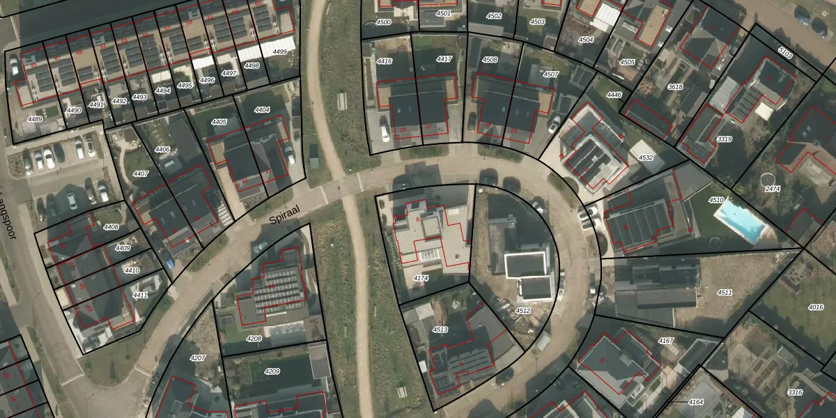 Het perceel waarop Spiraal 8 staat heeft een oppervlakte van 532 m². Dit is een groot perceel. De perceeloppervlakte wordt geregistreerd door het Kadaster. Gedetailleerde informatie over de maten van dit perceel kunt u vinden in het rapport Kadastrale kaart met maatvoering van Spiraal 8.