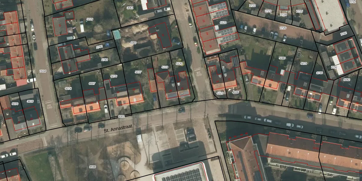St. Annastraat 32 is gelegen op kadastraal perceel UDN00M5120. Deze kadastrale aanduiding is uniek en wordt gebruikt door het Kadaster om eigendomsrechten en andere zakelijke rechten vast te leggen. Het perceel maakt onderdeel uit van de kadastrale gemeente Uden.