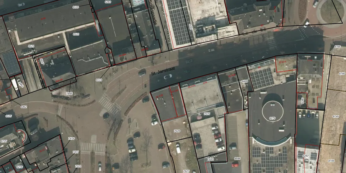 St. Janstraat 23 is gelegen op kadastraal perceel UDN00M7628. Deze kadastrale aanduiding is uniek en wordt gebruikt door het Kadaster om eigendomsrechten en andere zakelijke rechten vast te leggen. Het perceel maakt onderdeel uit van de kadastrale gemeente Uden.