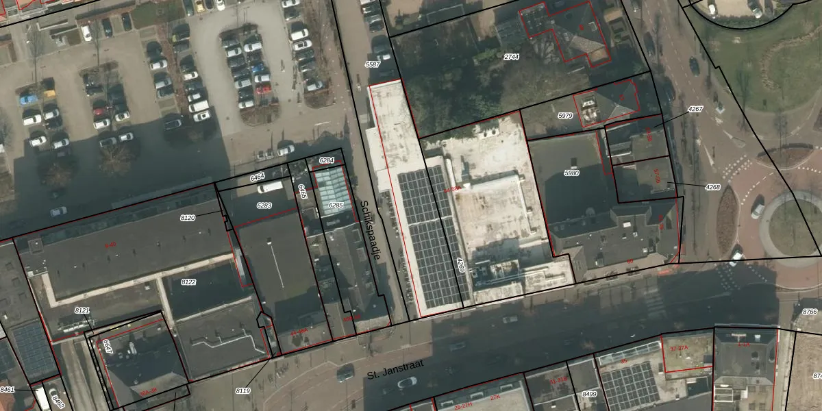 Het perceel waarop St. Janstraat 54 staat heeft een oppervlakte van 1195 m². Dit is een zeer groot perceel. De perceeloppervlakte wordt geregistreerd door het Kadaster. Gedetailleerde informatie over de maten van dit perceel kunt u vinden in het rapport Kadastrale kaart met maatvoering van St. Janstraat 54.