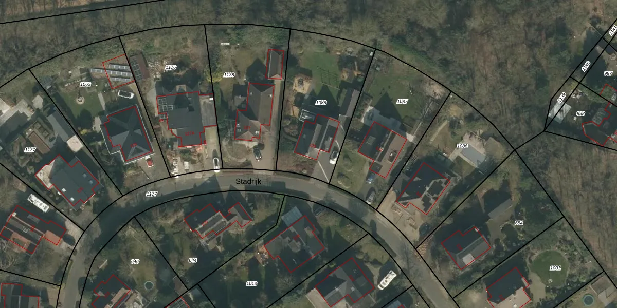 Het perceel waarop Stadrijk 125 staat heeft een oppervlakte van 1067 m². Dit is een zeer groot perceel. De perceeloppervlakte wordt geregistreerd door het Kadaster. Gedetailleerde informatie over de maten van dit perceel kunt u vinden in het rapport Kadastrale kaart met maatvoering van Stadrijk 125.