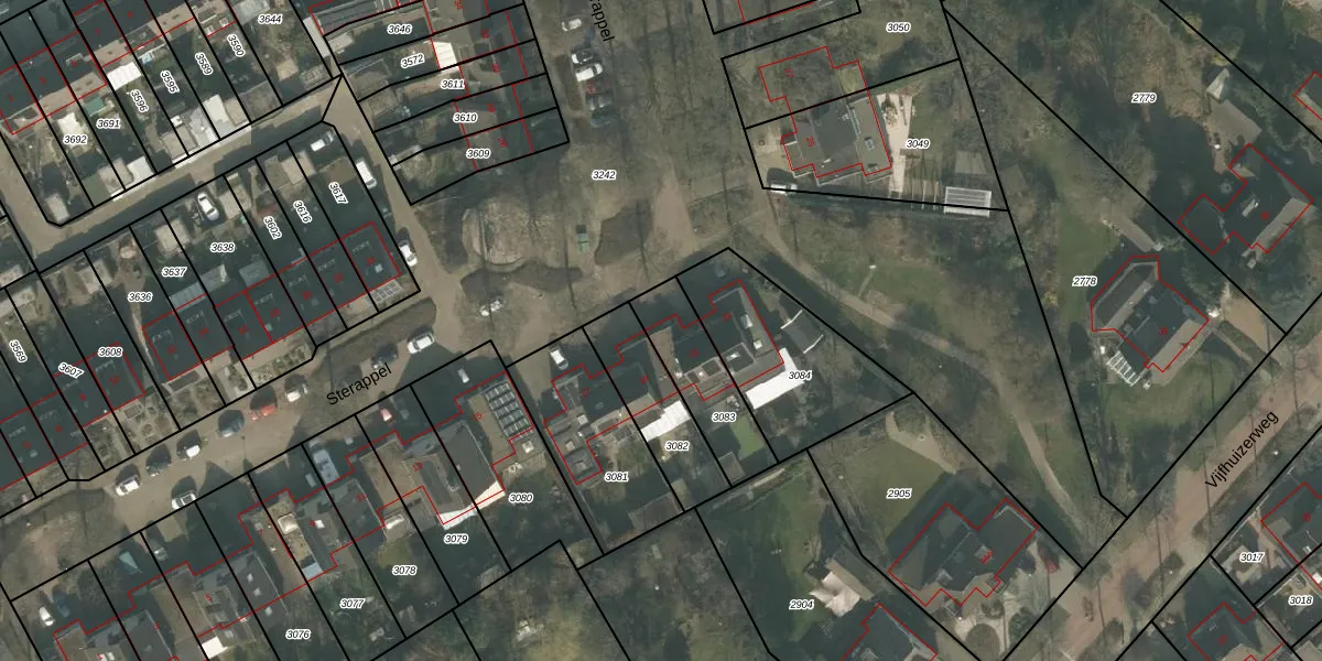 Het perceel waarop Sterappel 21 staat heeft een oppervlakte van 257 m². Dit is een middelgroot perceel. De perceeloppervlakte wordt geregistreerd door het Kadaster. Gedetailleerde informatie over de maten van dit perceel kunt u vinden in het rapport Kadastrale kaart met maatvoering van Sterappel 21.