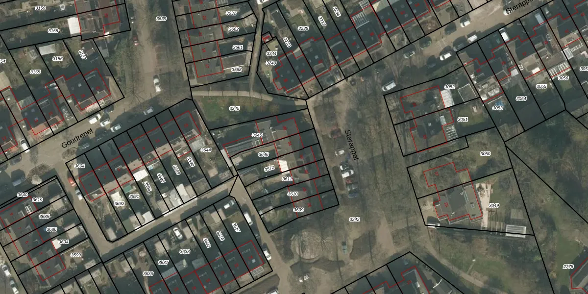 Gebruik de zoekbalk of klik op een perceel voor informatie over de adressen binnen dit perceel.
