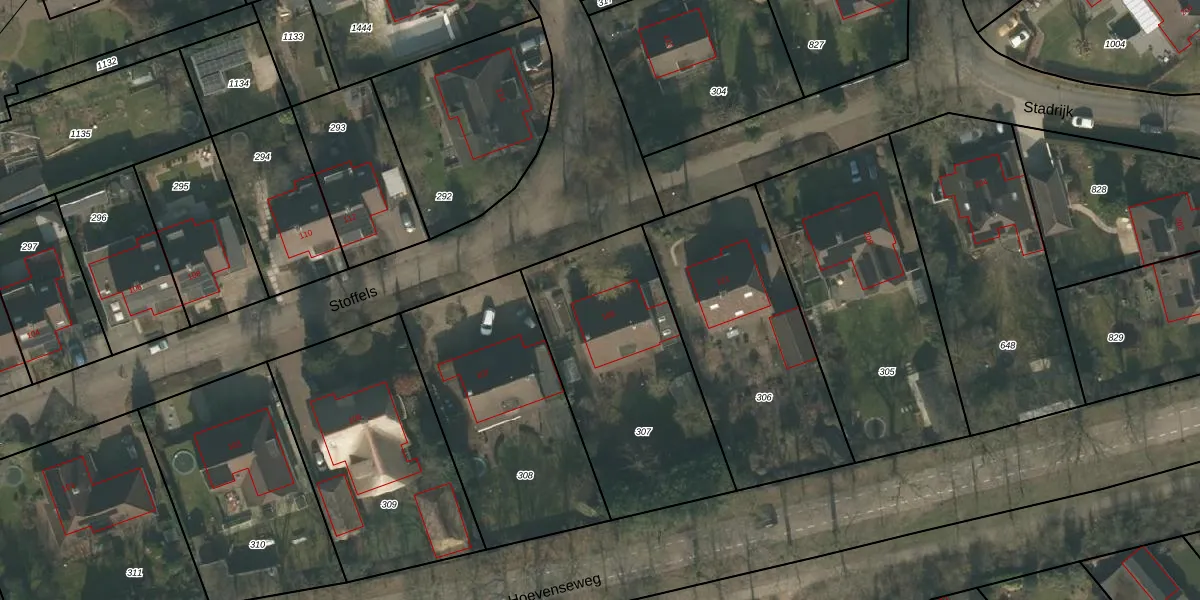 Het perceel waarop Stoffels 109 staat heeft een oppervlakte van 975 m². Dit is een groot perceel. De perceeloppervlakte wordt geregistreerd door het Kadaster. Gedetailleerde informatie over de maten van dit perceel kunt u vinden in het rapport Kadastrale kaart met maatvoering van Stoffels 109.