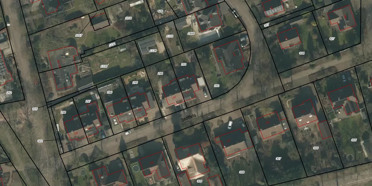 Het perceel waarop Stoffels 112 staat heeft een oppervlakte van 400 m². Dit is een groot perceel. De perceeloppervlakte wordt geregistreerd door het Kadaster. Gedetailleerde informatie over de maten van dit perceel kunt u vinden in het rapport Kadastrale kaart met maatvoering van Stoffels 112.