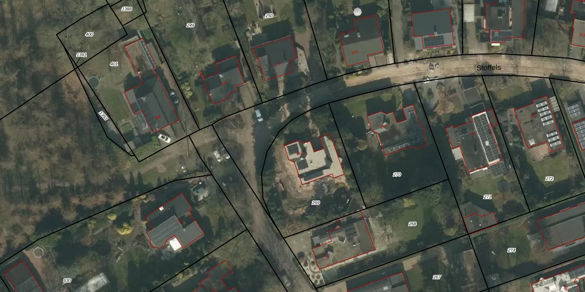 Stoffels 318 is gelegen op kadastraal perceel UDN00S269. Deze kadastrale aanduiding is uniek en wordt gebruikt door het Kadaster om eigendomsrechten en andere zakelijke rechten vast te leggen. Het perceel maakt onderdeel uit van de kadastrale gemeente Uden.
