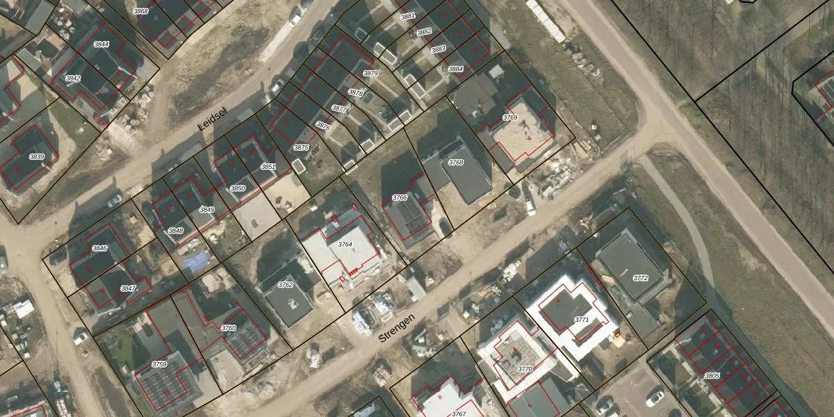 Strengen 5 is gelegen op kadastraal perceel UDN00P3766. Deze kadastrale aanduiding is uniek en wordt gebruikt door het Kadaster om eigendomsrechten en andere zakelijke rechten vast te leggen. Het perceel maakt onderdeel uit van de kadastrale gemeente Uden.