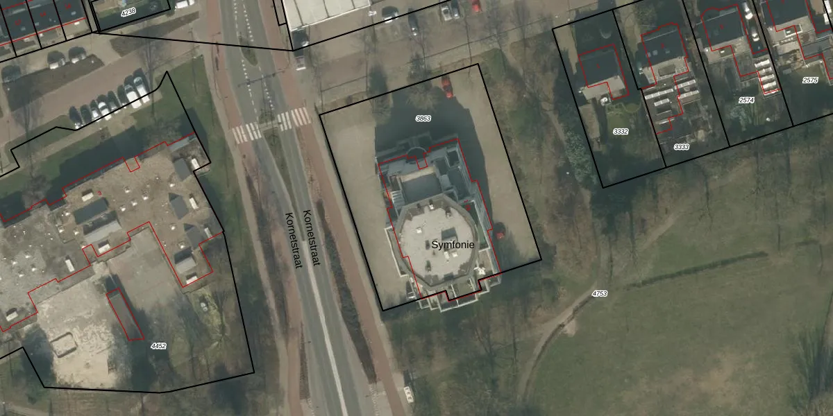 Het perceel waarop Symfonie 3 staat heeft een oppervlakte van 2003 m². Dit is een zeer groot perceel. De perceeloppervlakte wordt geregistreerd door het Kadaster. Gedetailleerde informatie over de maten van dit perceel kunt u vinden in het rapport Kadastrale kaart met maatvoering van Symfonie 3.
