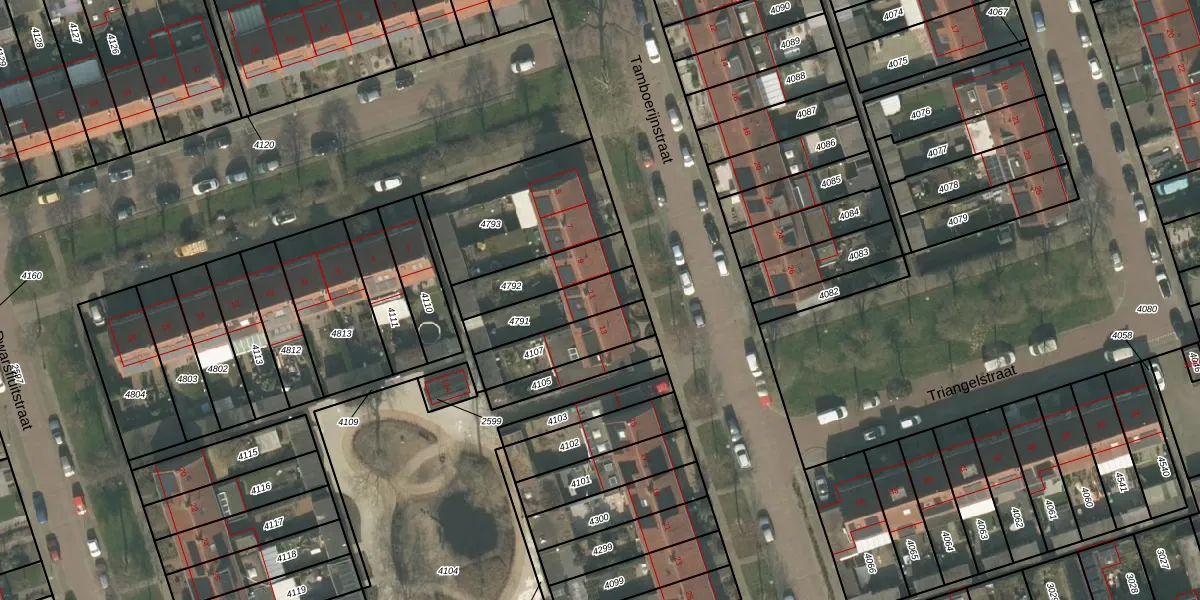 Gebruik de zoekbalk of klik op een perceel voor informatie over de adressen binnen dit perceel.