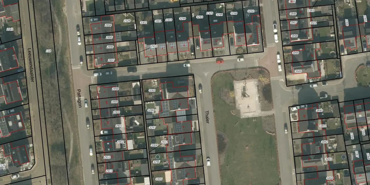 Het perceel waarop Thaler 1 staat heeft een oppervlakte van 340 m². Dit is een groot perceel. De perceeloppervlakte wordt geregistreerd door het Kadaster. Gedetailleerde informatie over de maten van dit perceel kunt u vinden in het rapport Kadastrale kaart met maatvoering van Thaler 1.