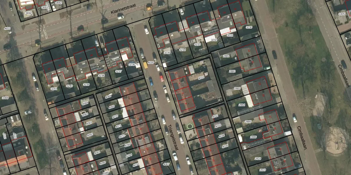 Het perceel waarop Triangelstraat 4 staat heeft een oppervlakte van 708 m². Dit is een groot perceel. De perceeloppervlakte wordt geregistreerd door het Kadaster. Gedetailleerde informatie over de maten van dit perceel kunt u vinden in het rapport Kadastrale kaart met maatvoering van Triangelstraat 4.