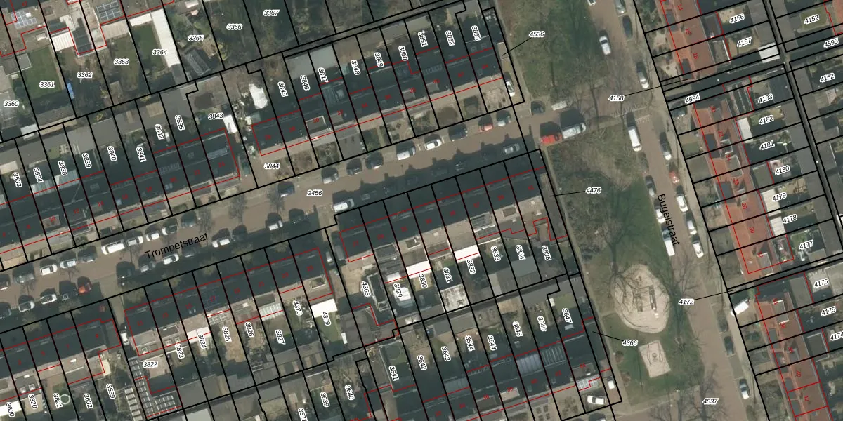 Het perceel waarop Trompetstraat 33 staat heeft een oppervlakte van 181 m². Dit is een middelgroot perceel. De perceeloppervlakte wordt geregistreerd door het Kadaster. Gedetailleerde informatie over de maten van dit perceel kunt u vinden in het rapport Kadastrale kaart met maatvoering van Trompetstraat 33.