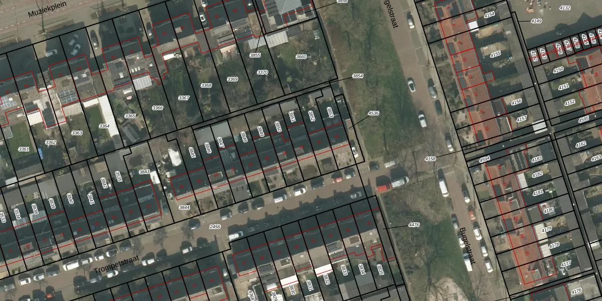 Het perceel waarop Trompetstraat 40 staat heeft een oppervlakte van 165 m². Dit is een middelgroot perceel. De perceeloppervlakte wordt geregistreerd door het Kadaster. Gedetailleerde informatie over de maten van dit perceel kunt u vinden in het rapport Kadastrale kaart met maatvoering van Trompetstraat 40.