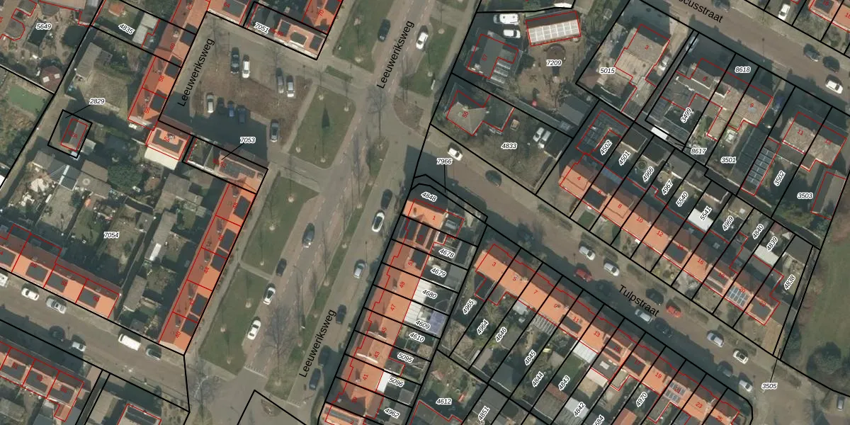 Gebruik de zoekbalk of klik op een perceel voor informatie over de adressen binnen dit perceel.