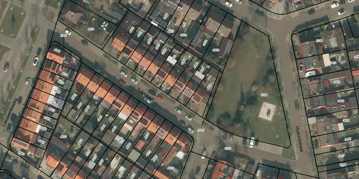 Het perceel waarop Tulpstraat 18 staat heeft een oppervlakte van 156 m². Dit is een middelgroot perceel. De perceeloppervlakte wordt geregistreerd door het Kadaster. Gedetailleerde informatie over de maten van dit perceel kunt u vinden in het rapport Kadastrale kaart met maatvoering van Tulpstraat 18.