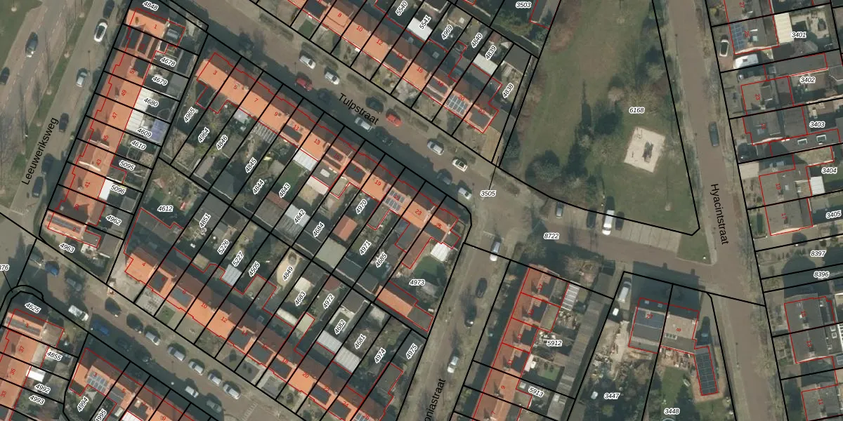 Gebruik de zoekbalk of klik op een perceel voor informatie over de adressen binnen dit perceel.