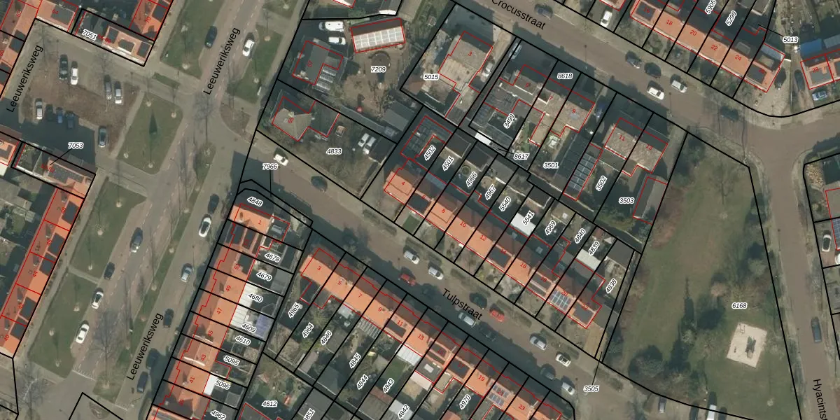 Gebruik de zoekbalk of klik op een perceel voor informatie over de adressen binnen dit perceel.