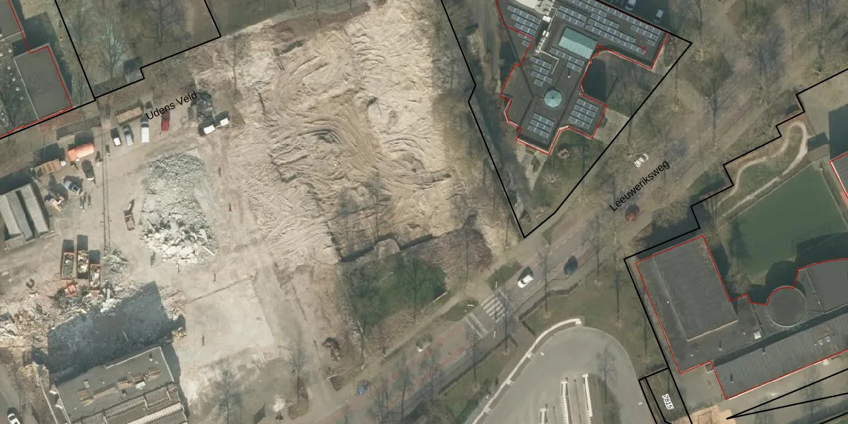 Het perceel waarop Udens Veld 30 staat heeft een oppervlakte van 14,3 ha. Dit is een zeer groot perceel. De perceeloppervlakte wordt geregistreerd door het Kadaster. Gedetailleerde informatie over de maten van dit perceel kunt u vinden in het rapport Kadastrale kaart met maatvoering van Udens Veld 30.