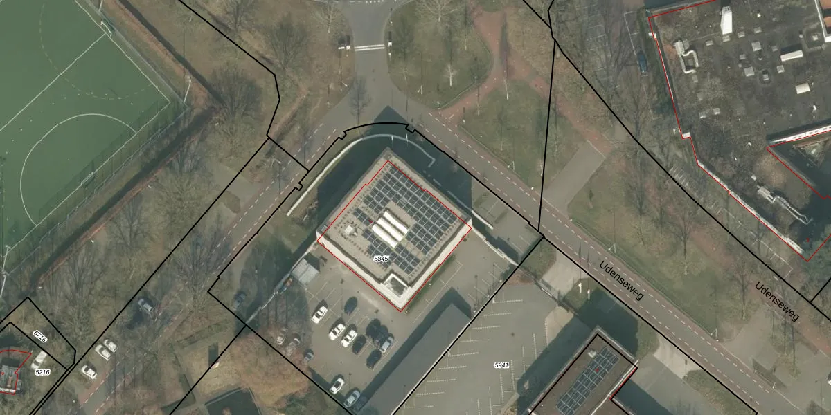 Udenseweg 1 is gelegen op kadastraal perceel UDN00F5845. Deze kadastrale aanduiding is uniek en wordt gebruikt door het Kadaster om eigendomsrechten en andere zakelijke rechten vast te leggen. Het perceel maakt onderdeel uit van de kadastrale gemeente Uden.