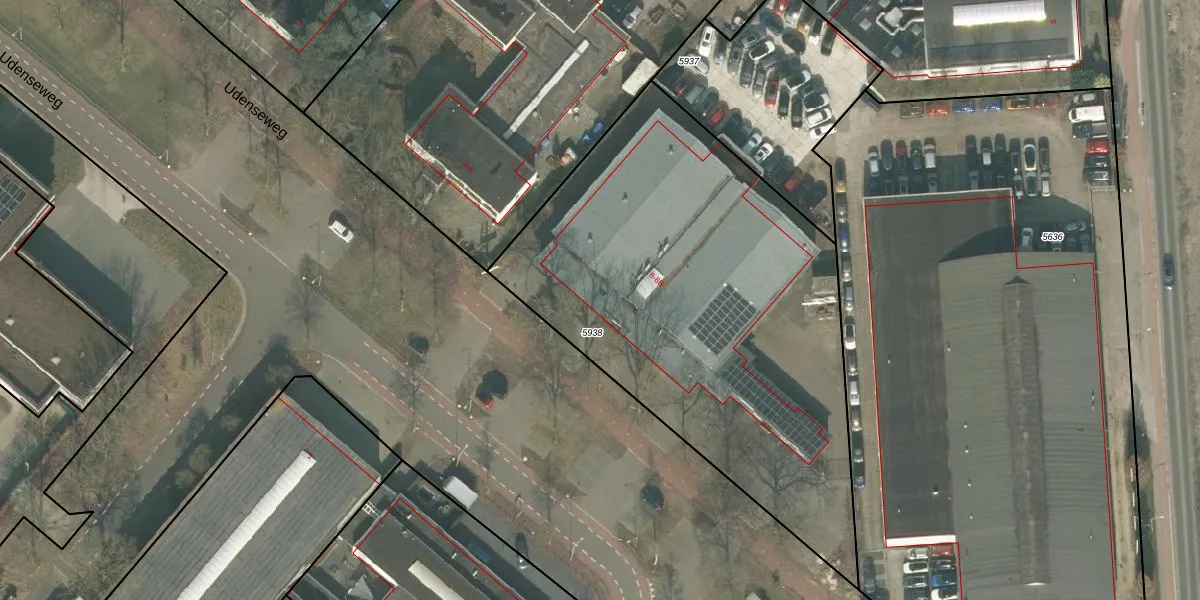 Udenseweg 8-A is gelegen op kadastraal perceel UDN00F5938. Deze kadastrale aanduiding is uniek en wordt gebruikt door het Kadaster om eigendomsrechten en andere zakelijke rechten vast te leggen. Het perceel maakt onderdeel uit van de kadastrale gemeente Uden.