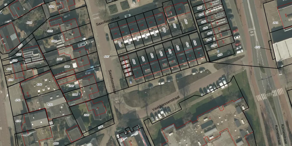Vaaldriessenstraat 4 is gelegen op kadastraal perceel UDN00B4254. Deze kadastrale aanduiding is uniek en wordt gebruikt door het Kadaster om eigendomsrechten en andere zakelijke rechten vast te leggen. Het perceel maakt onderdeel uit van de kadastrale gemeente Uden.