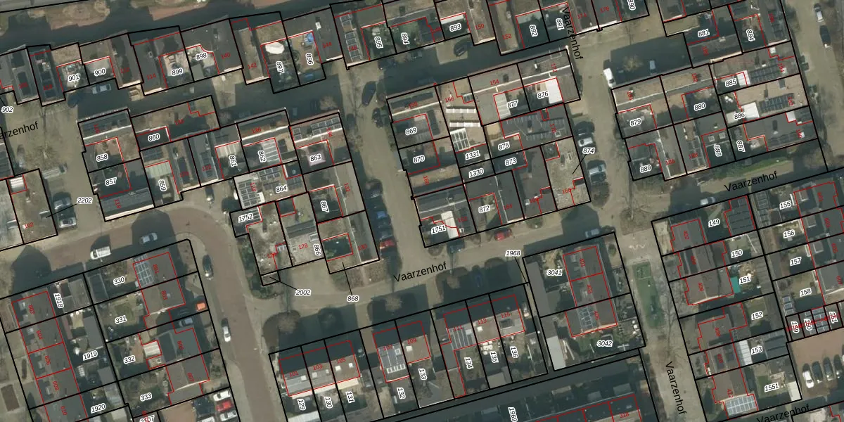 Gebruik de zoekbalk of klik op een perceel voor informatie over de adressen binnen dit perceel.