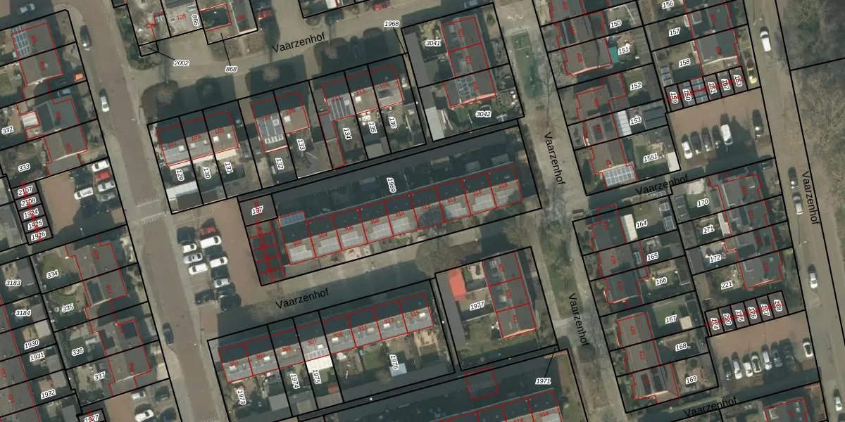 Het perceel waarop Vaarzenhof 312 staat heeft een oppervlakte van 1351 m². Dit is een zeer groot perceel. De perceeloppervlakte wordt geregistreerd door het Kadaster. Gedetailleerde informatie over de maten van dit perceel kunt u vinden in het rapport Kadastrale kaart met maatvoering van Vaarzenhof 312.