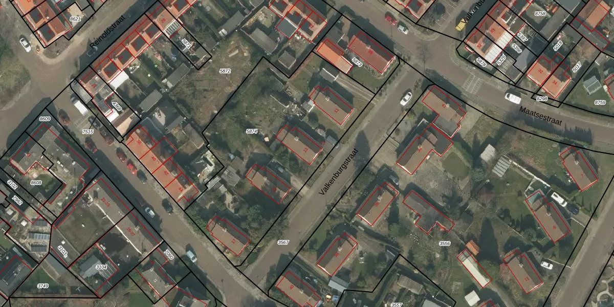 Valkenburgstraat 13 is gelegen op kadastraal perceel UDN00M5874. Deze kadastrale aanduiding is uniek en wordt gebruikt door het Kadaster om eigendomsrechten en andere zakelijke rechten vast te leggen. Het perceel maakt onderdeel uit van de kadastrale gemeente Uden.